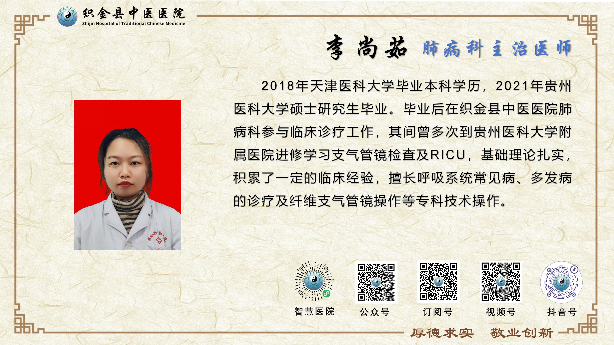 科室医疗团队现有医护人员23名,医生9名,其中副主任医师1名,主治医师3名,住院医师5名;研究生3名,规培生1名,本科学士学位6名;护理人员14名,主管护师5名,护师9名。人员梯队结构合理,专业配置符合要求,有科学合理的传承培养模式,曾赴广州、贵州省人民医院、贵州医科大学附属医院、贵州中医药大学附属医院等地进修,进修人数医师4人次,护理人员9人次,人均学习进修时间3-6月,进修专业为呼吸与危重症医学科、RICU、耳穴专科护士、肺功能检测、支气管镜检查等。